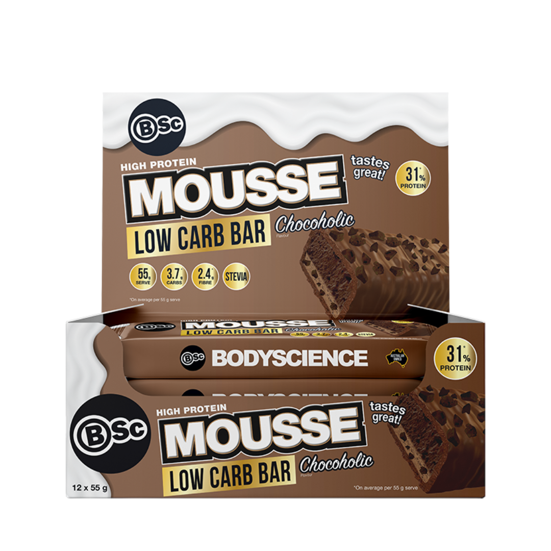 A bar that defies expectations. With every bite delivering layers of award-winning, multi-protein, delightful crumbly texture, and a mousse filling. Body Science Low Carb High Protein Mousse Bars are every protein bar lover's dream. With protein in every layer, plus 3g of collagen per bar. Snack happy and satisfy those sweet cravings with these delicious bars