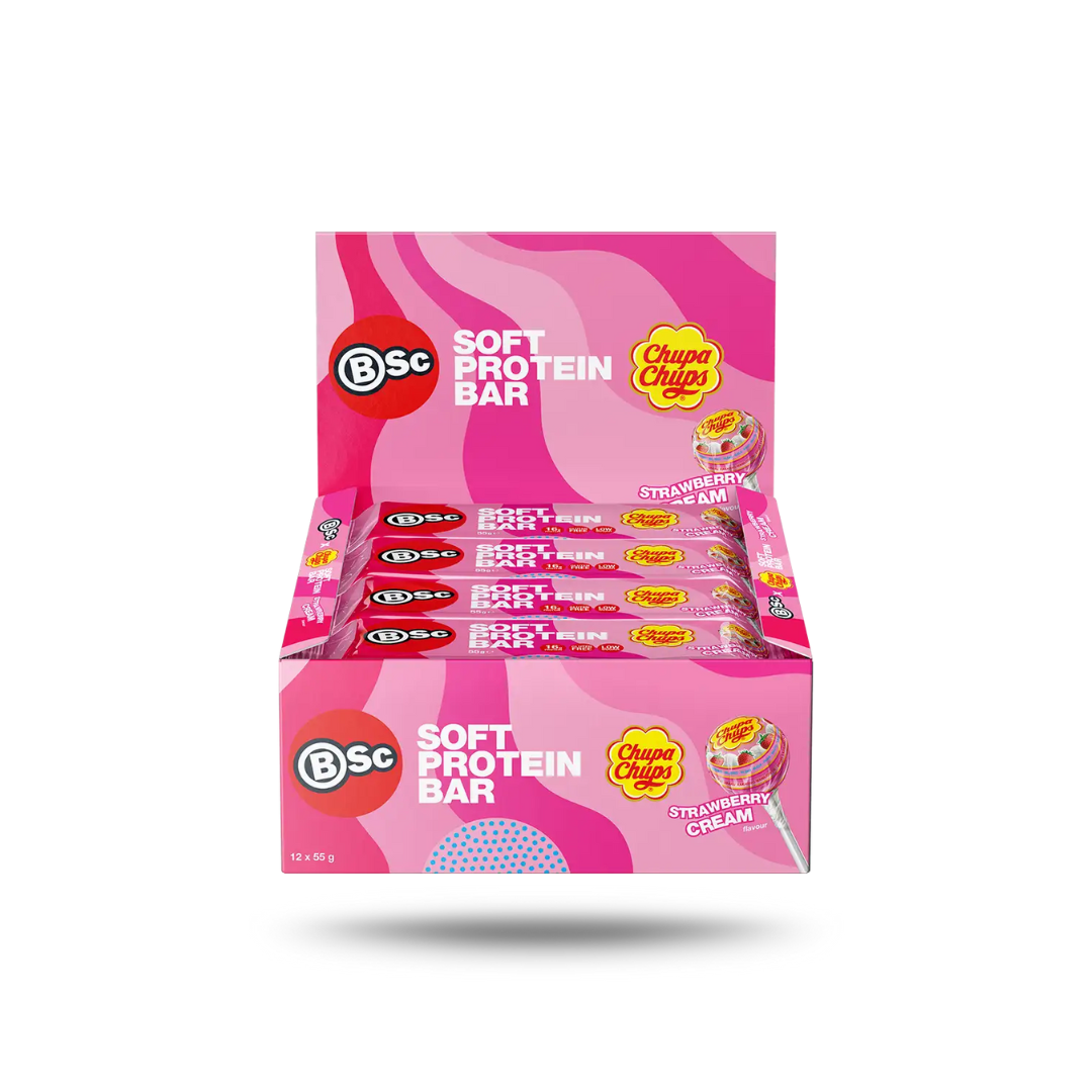 BSc x Chupa Chup Soft Protein Bar 55g Strawberry Cream - 12pack