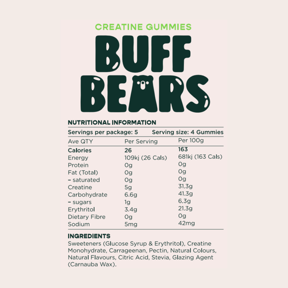 We took the classic gummy bear and made it BUFF! - Because your snacks should work as hard as you do. Whether post-workout, mid-day, or just because, Buff Bears keep you strong, satisfied, and guilt-free.