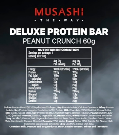 Musashi Deluxe Protein Bar - 60g - Peanut Crunch - 12 Pack