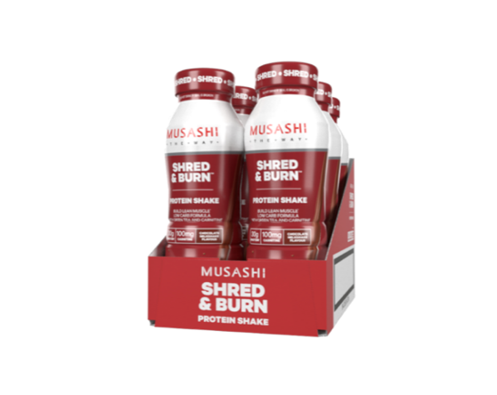Musashi Shred & Burn Shake- 375ml - Choc - 6 Pack