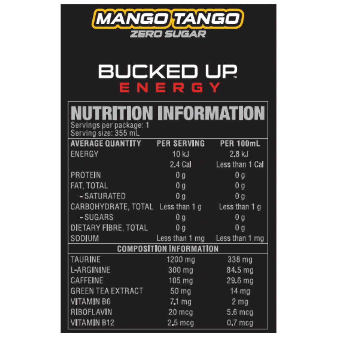 Bucked Up Energy Drink 355ml Mango Tango - 12 Pack