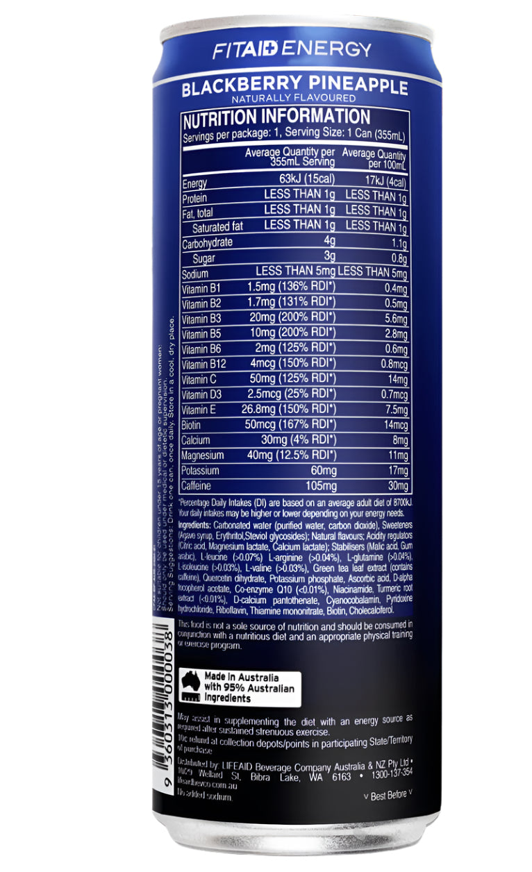 FITAID Energy 355ml Blackberry Pineapple - 12 Pack