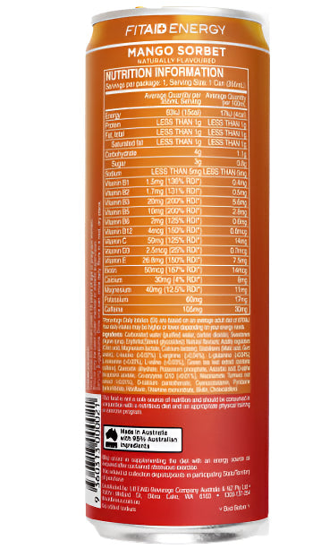 FITAID Energy 355ml Mango Sorbet - 12 Pack