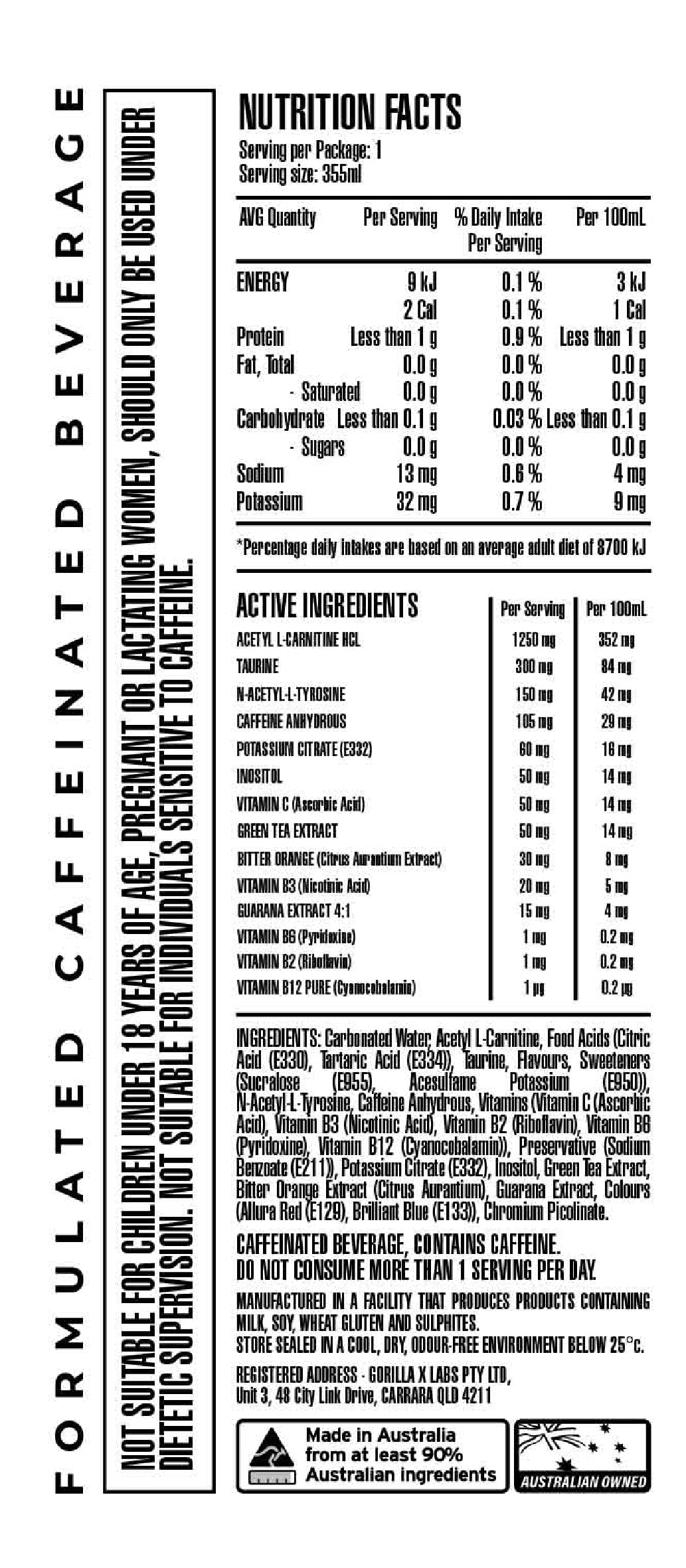 Gorilla X Labs BURN RTD 355ml Grape- 12 Pack