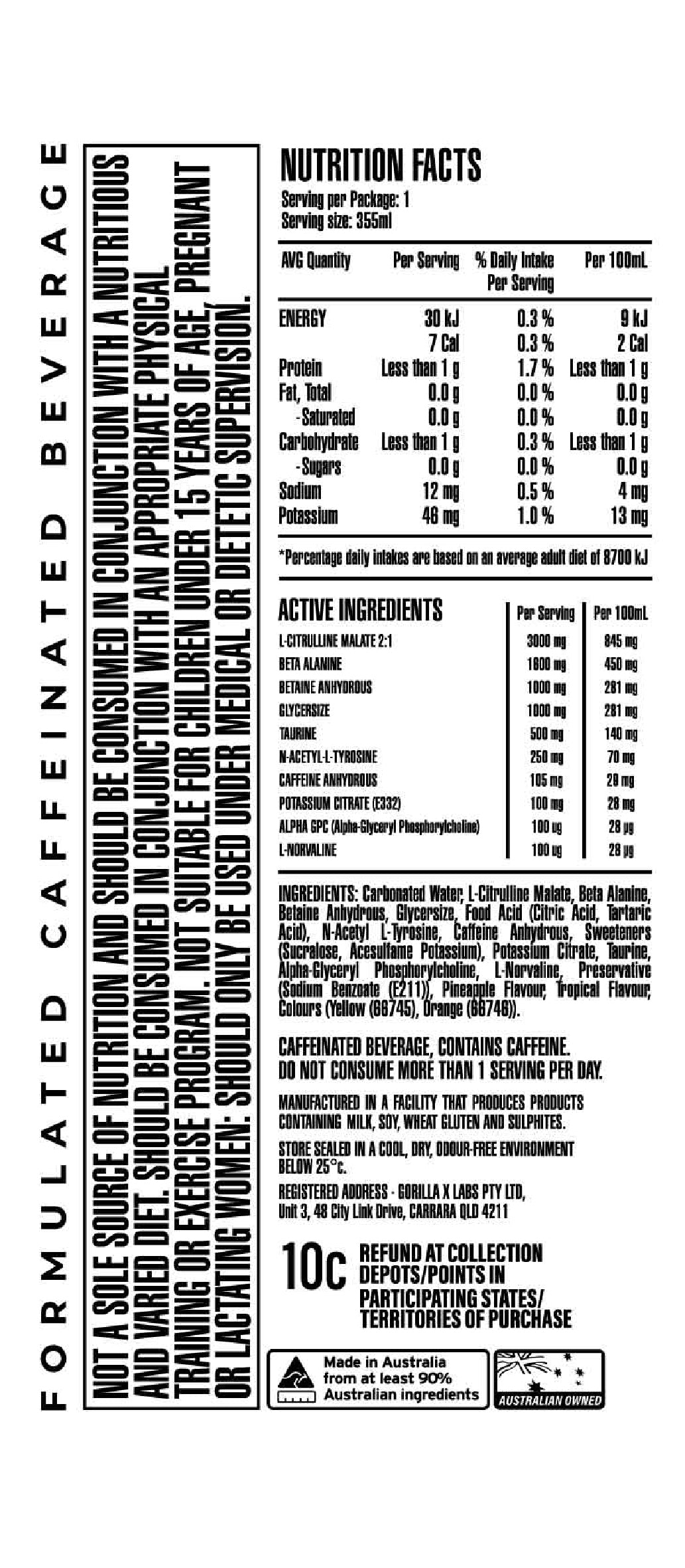 Gorilla X Labs PUMP + Caffeine RTD 355ml Jungle Juice - 12 Pack
