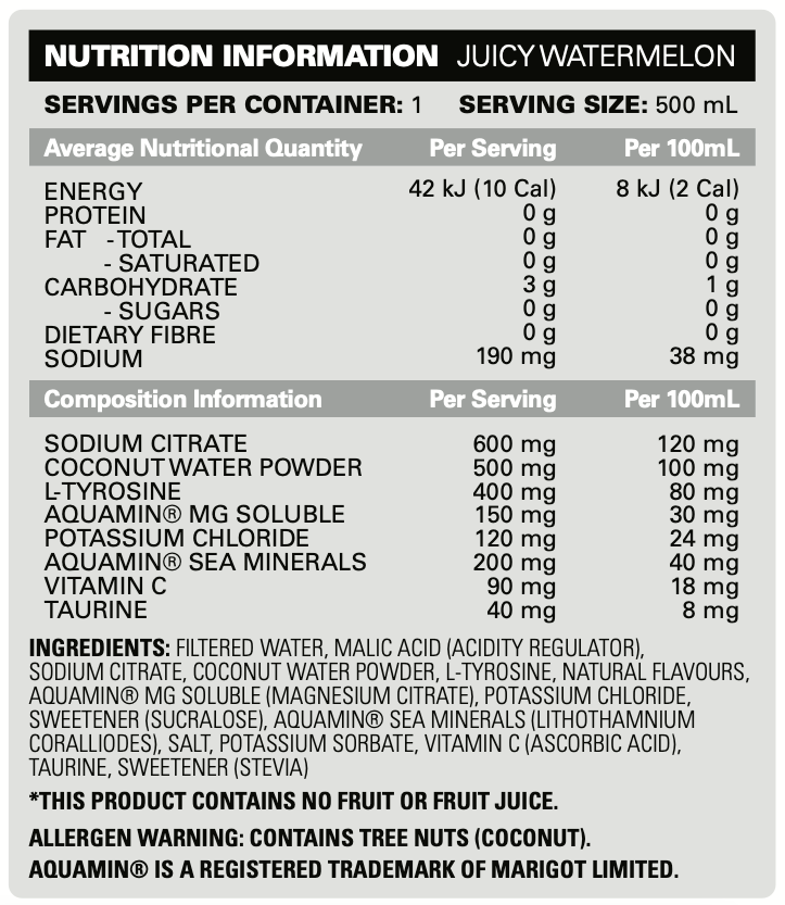 HYDREAU Sports Hydration RTDs are the ultimate zero sugar hydration drinks, packed with 1.47g of electrolytes per serve plus coconut water, Taurine, and Tyrosine for peak performance and focus. With 100% of your daily vitamin C and Aquamin sea minerals, it fuels hydration, muscle function and mental clarity.