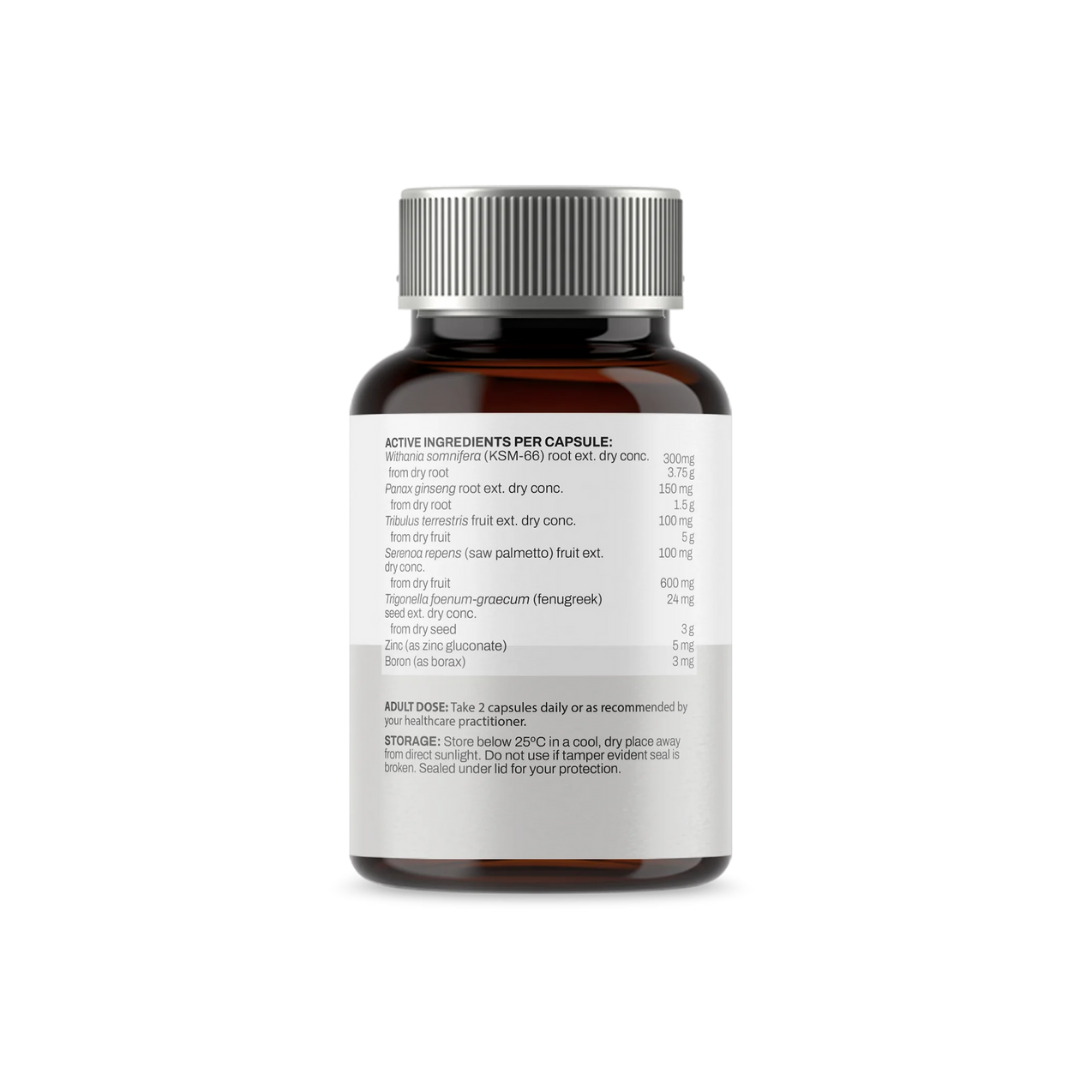 Meet TEST PERFORM, your premium blend of quality herbal extracts and essential nutrients, specifically formulated to support healthy testosterone levels in men. Fuel up with Withania (KSM-66), which is traditionally used in Ayurvedic medicine for its ability to combat fatigue, knock out stress, and support mental wellbeing. Then there's Panax, *traditionally used in Western herbal medicine, to support mental and physical endurance, promote physical performance and keep libido levels healthy.