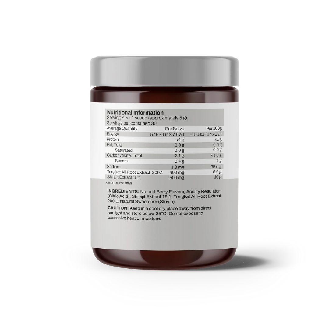 TONGKAT ALI + SHILAJIT POWDER combines the highly regarded, premium quality ingredients, Tongkat Ali Extract 200:1 and Shilajit Extract 15:1 in to a deliciously convenient powder. You know what it’s for, you know what it does.