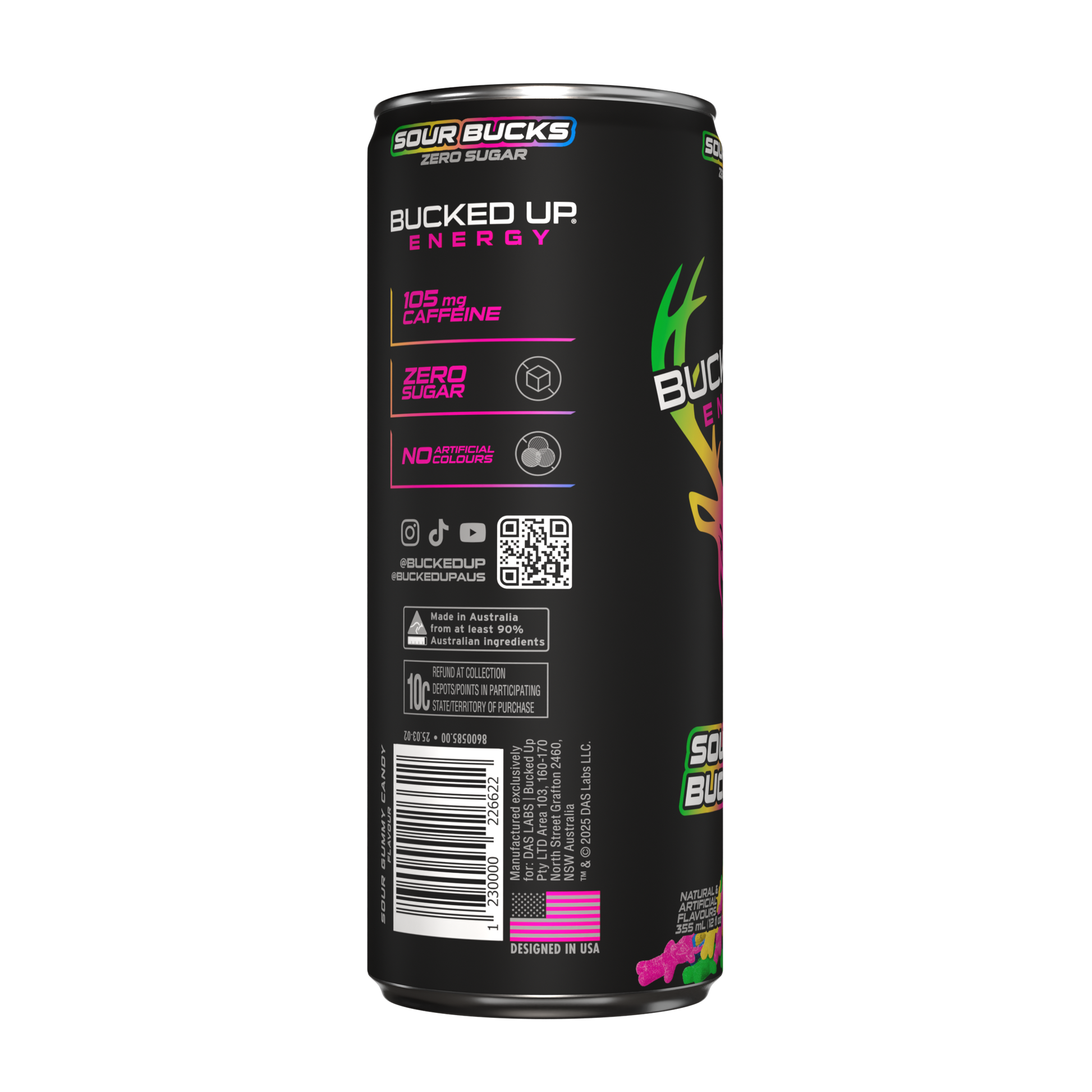Bucked Up Energy Drink 355ml Sour Bucks - 12 Pack