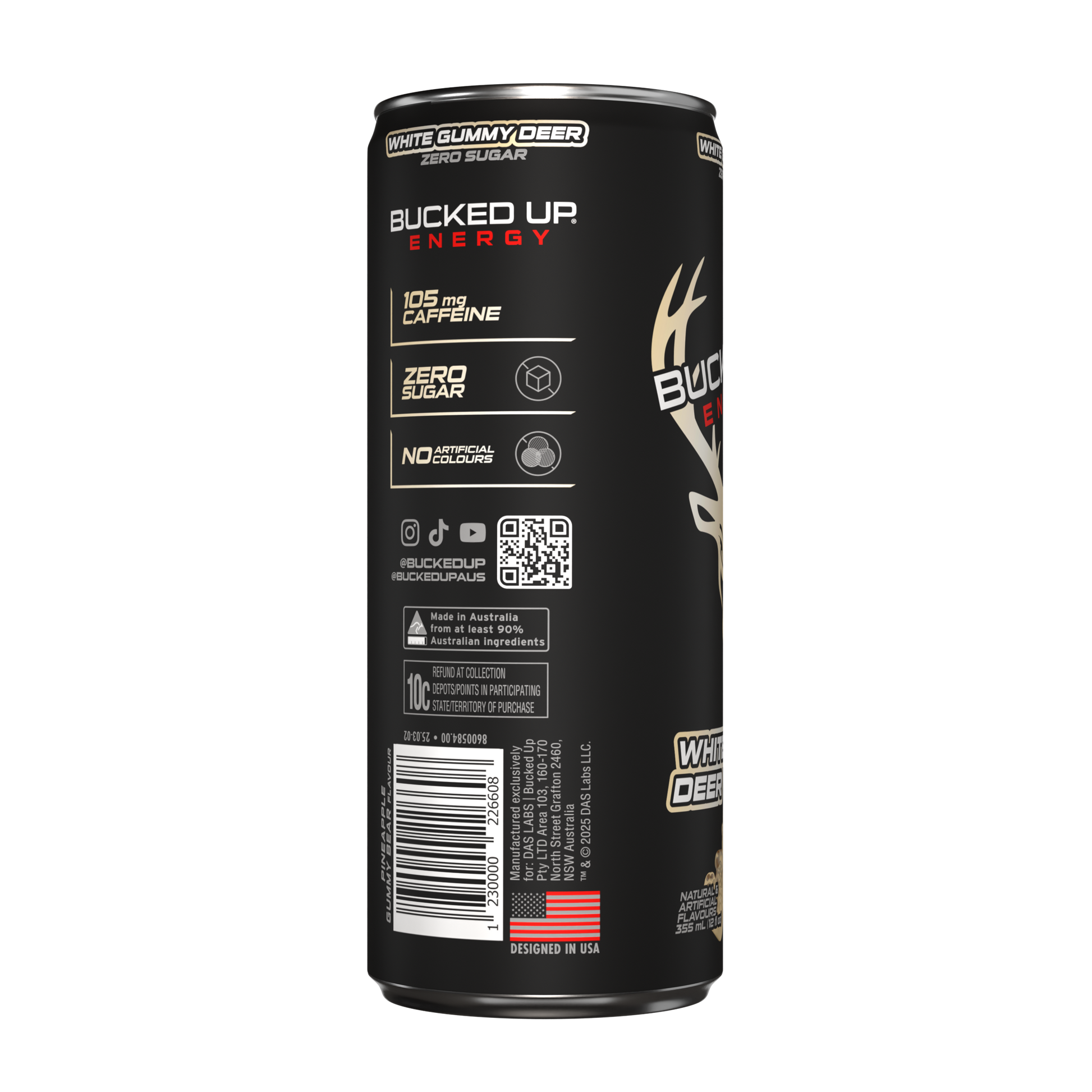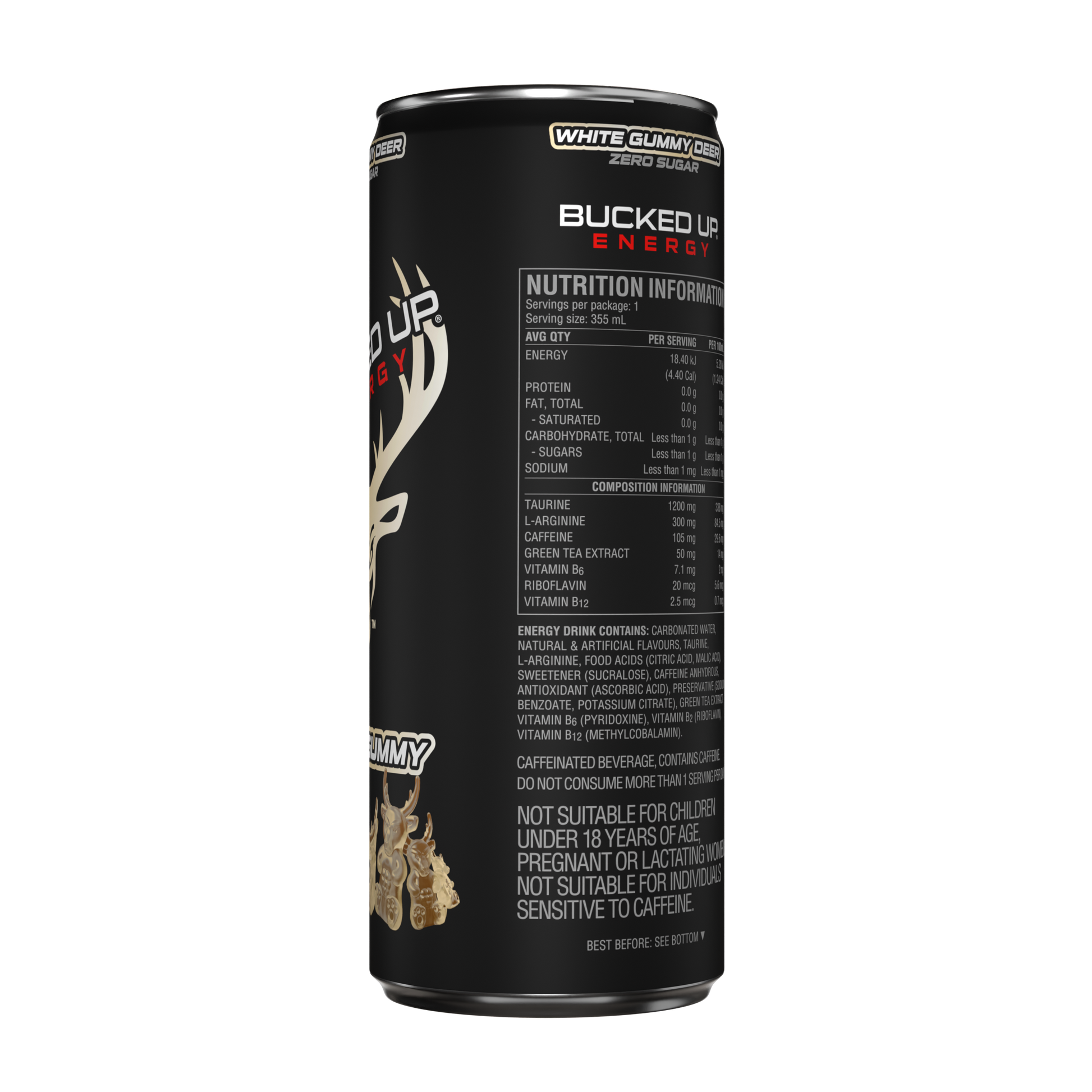 Bucked Up Energy Drink 355ml White Gummy Deer - 12 Pack