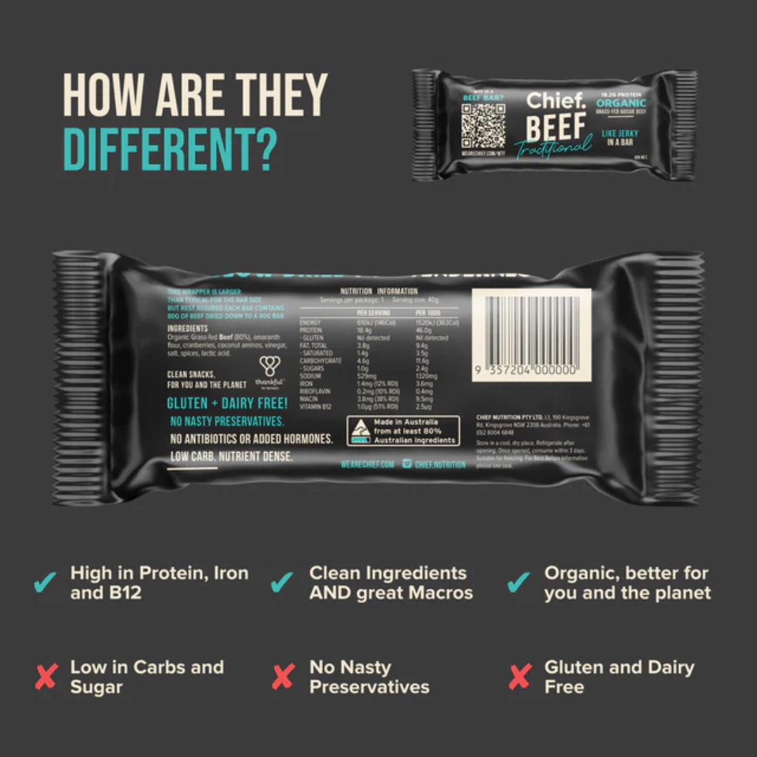 CHIEF Traditional Beef Protein Bar 40g - 12 Pack