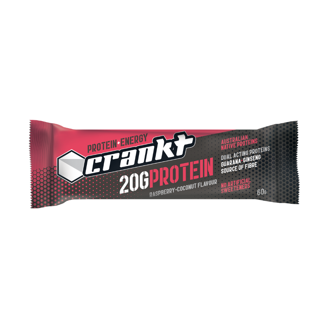 Crankt Protein bars are the ultimate body fuel, combining high levels of superior protein (20g) with vitamins, minerals, guarana and ginseng for natural energy and recovery.