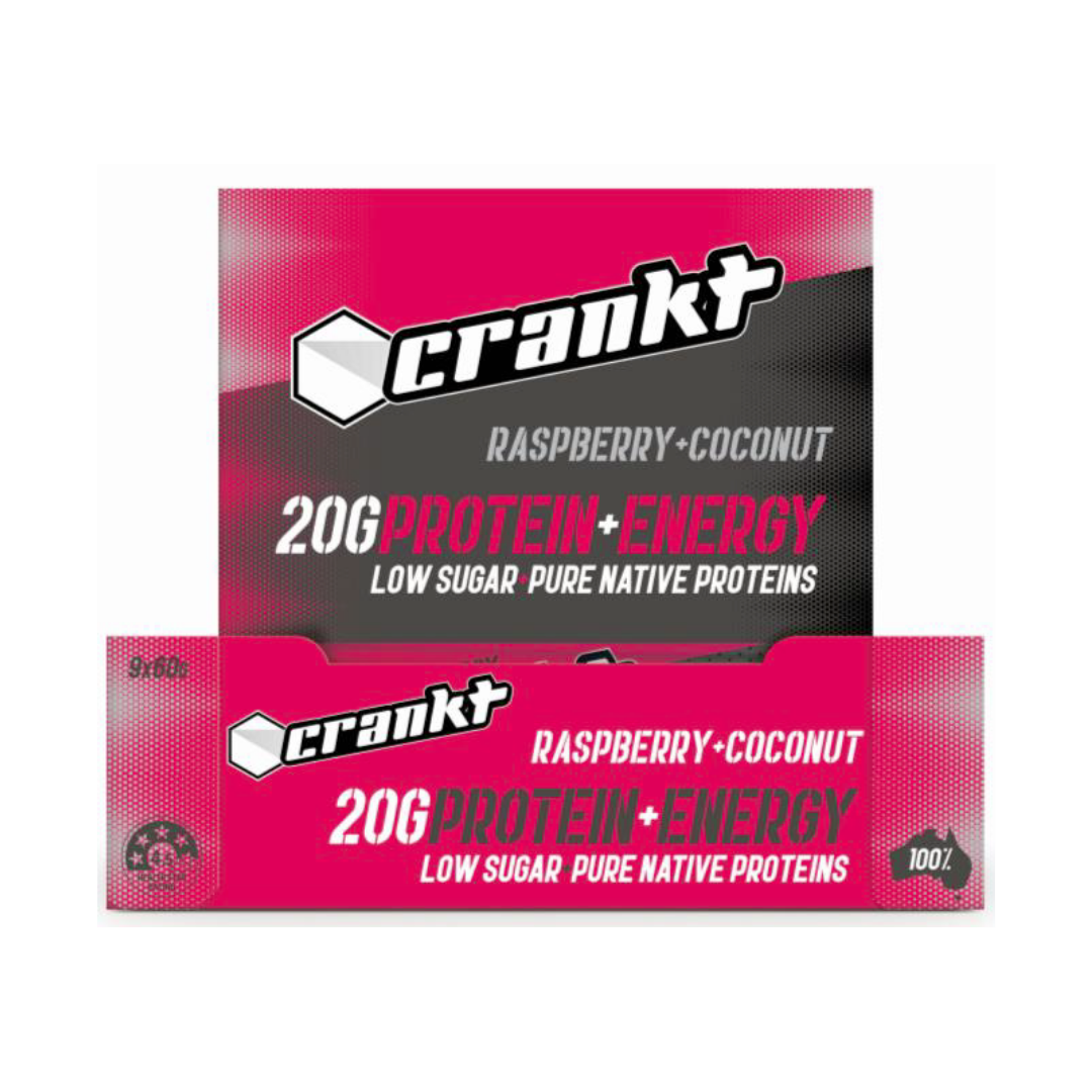 CRANKT Protein + Energy Bar 60g Raspberry & Coconut - 9 Pack