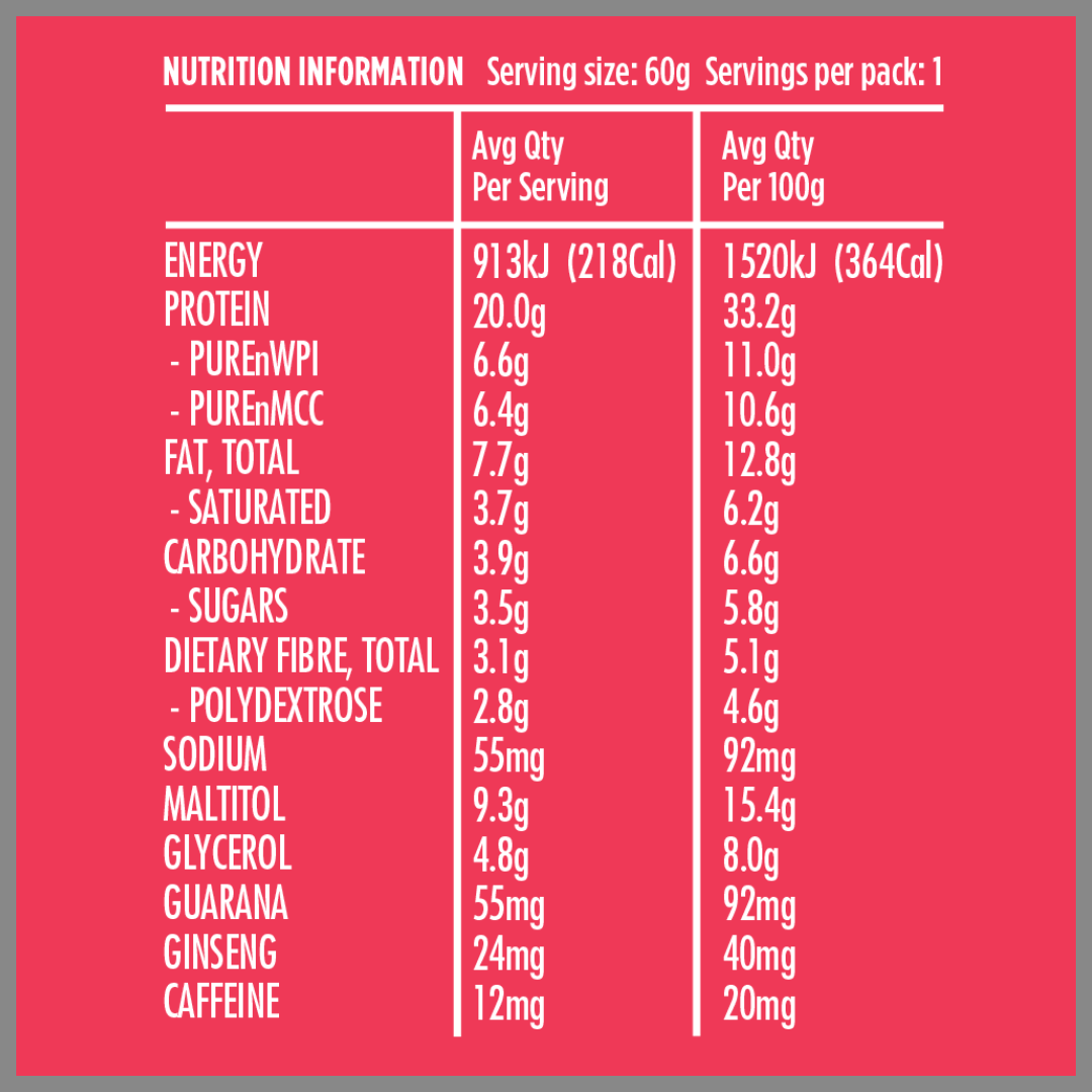 • Delicious Choc Raspberry flavoured protein bar