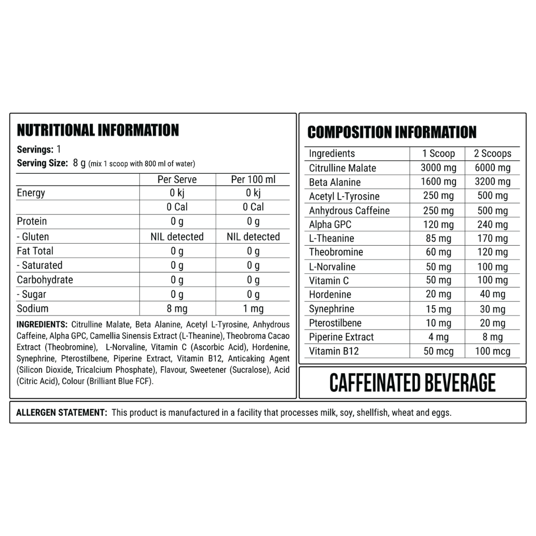 • 250mg caffeine providing a surge of energy!