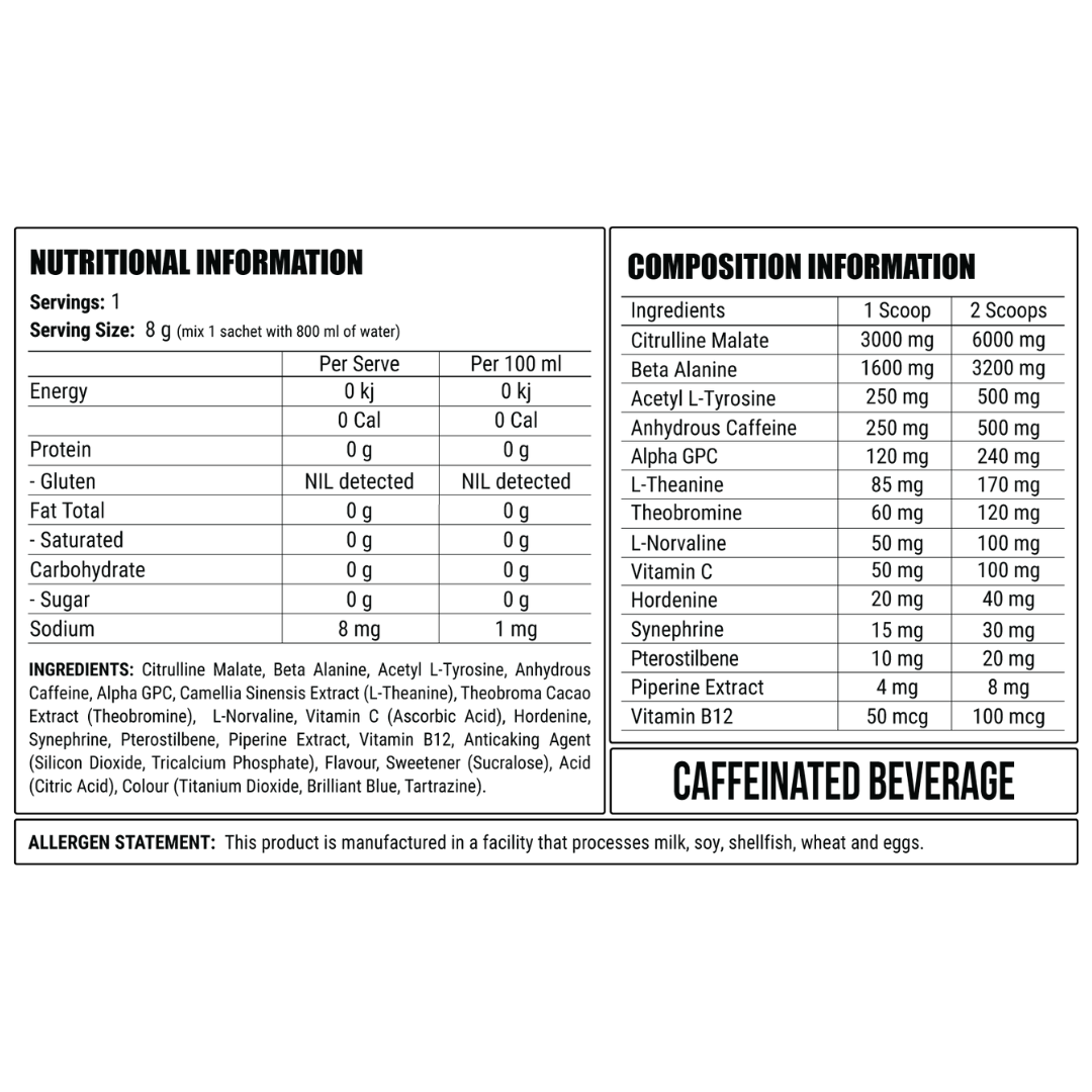 - 250mg caffeine providing a surge of energy!
