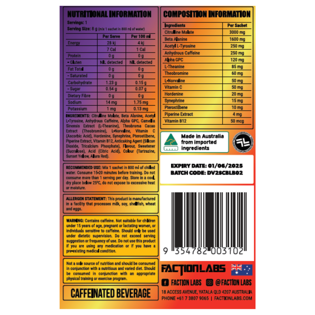 Faction Labs DISORDER Pre-Workout 8g Sachet Sunburnt Country Ltd Edition - 10 Pack