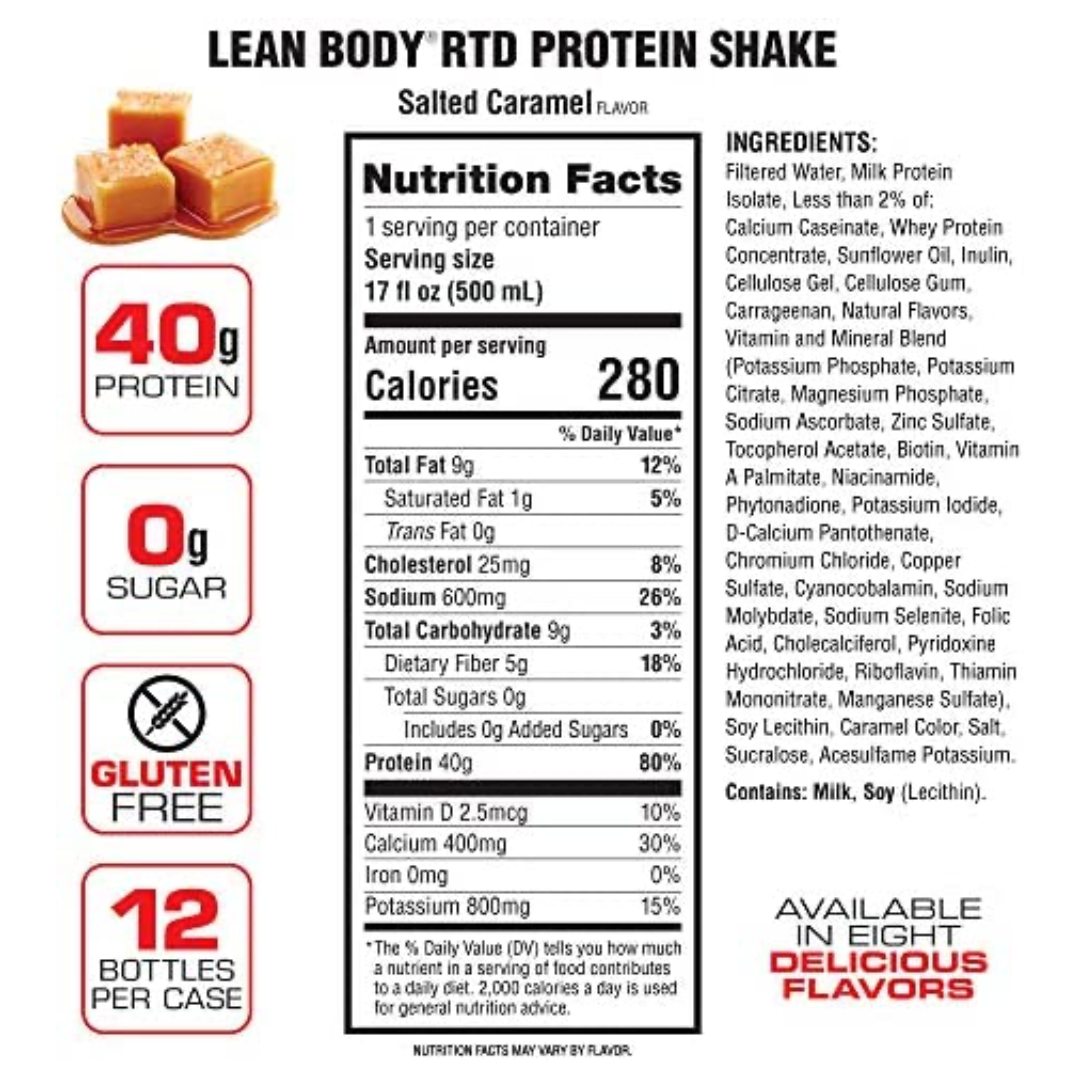 Lean Body 40g Protein RTD 500ml Salted Caramel - 12 Pack