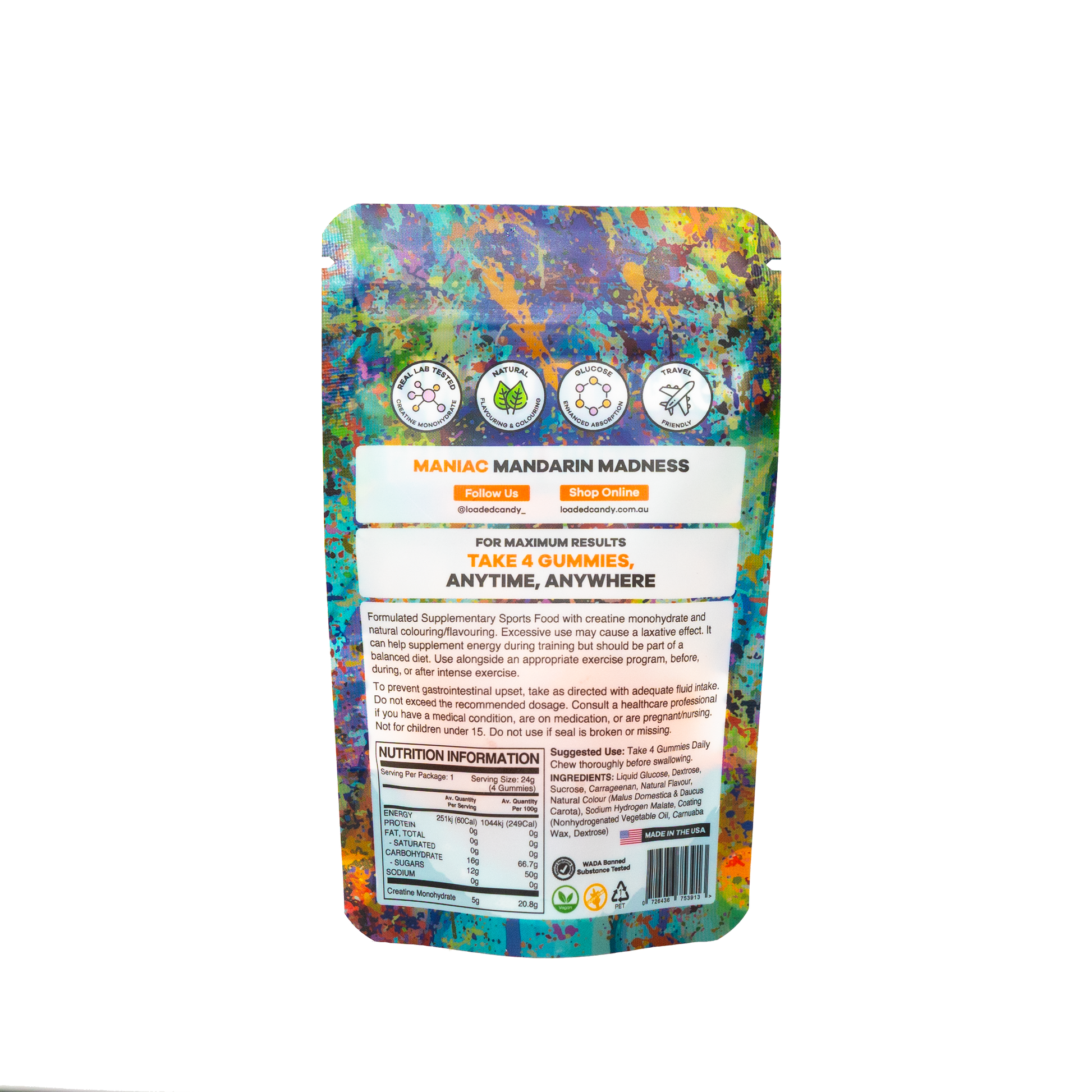 Loaded Candy Creatine Gummies Single Serve Maniac Mandarin - 10 Pack