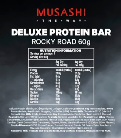 Musashi Deluxe Protein Bar - 60g - Rocky Road - 12 Pack
