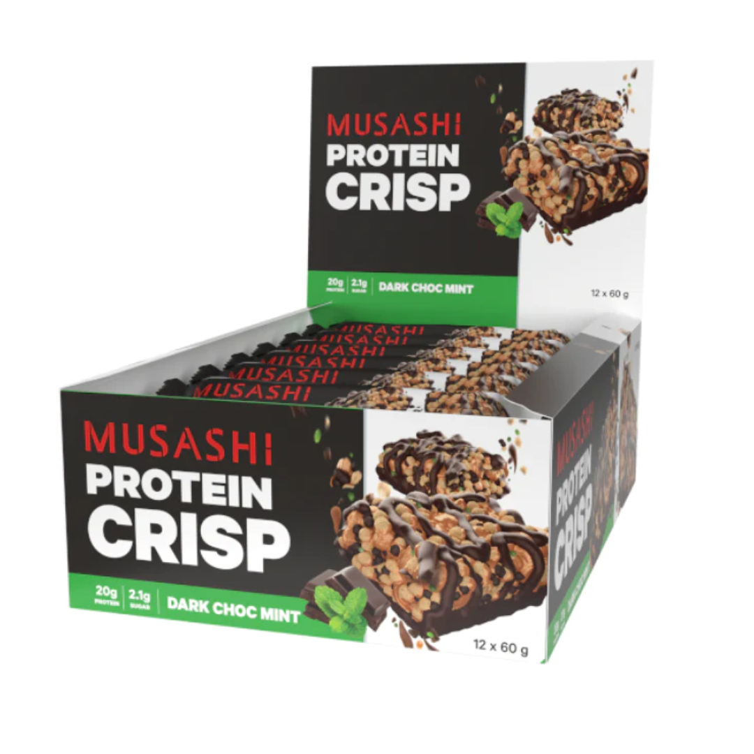 MUSASHI PROTEIN CRISP is the next evolution in the protein bar taste and sensation experience. A delicious and convenient bar loaded with 20g of high quality protein, and a unique combination of crispy and chunky pieces drizzled in milk chocolate.