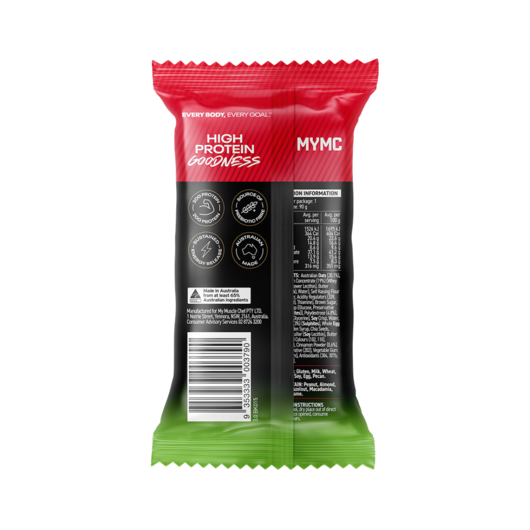 Start your day the right way with our oven baked Oat Slice. They're made with 100% Australian wholegrain oats and protein along with a unique gut health complex containing prebiotics and probiotics. With tasty, dried apple pieces and cinnamon combined with chia seeds and pecans for extra crunch, these high protein oat slices are the perfect on-the-go breakfast or mid-morning snack when you need sustained energy to get you through the day.