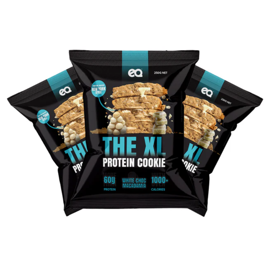 NEW EQ 1000 Calorie XL Protein Cookie 250g White Choc Macadamia - 8 Pack