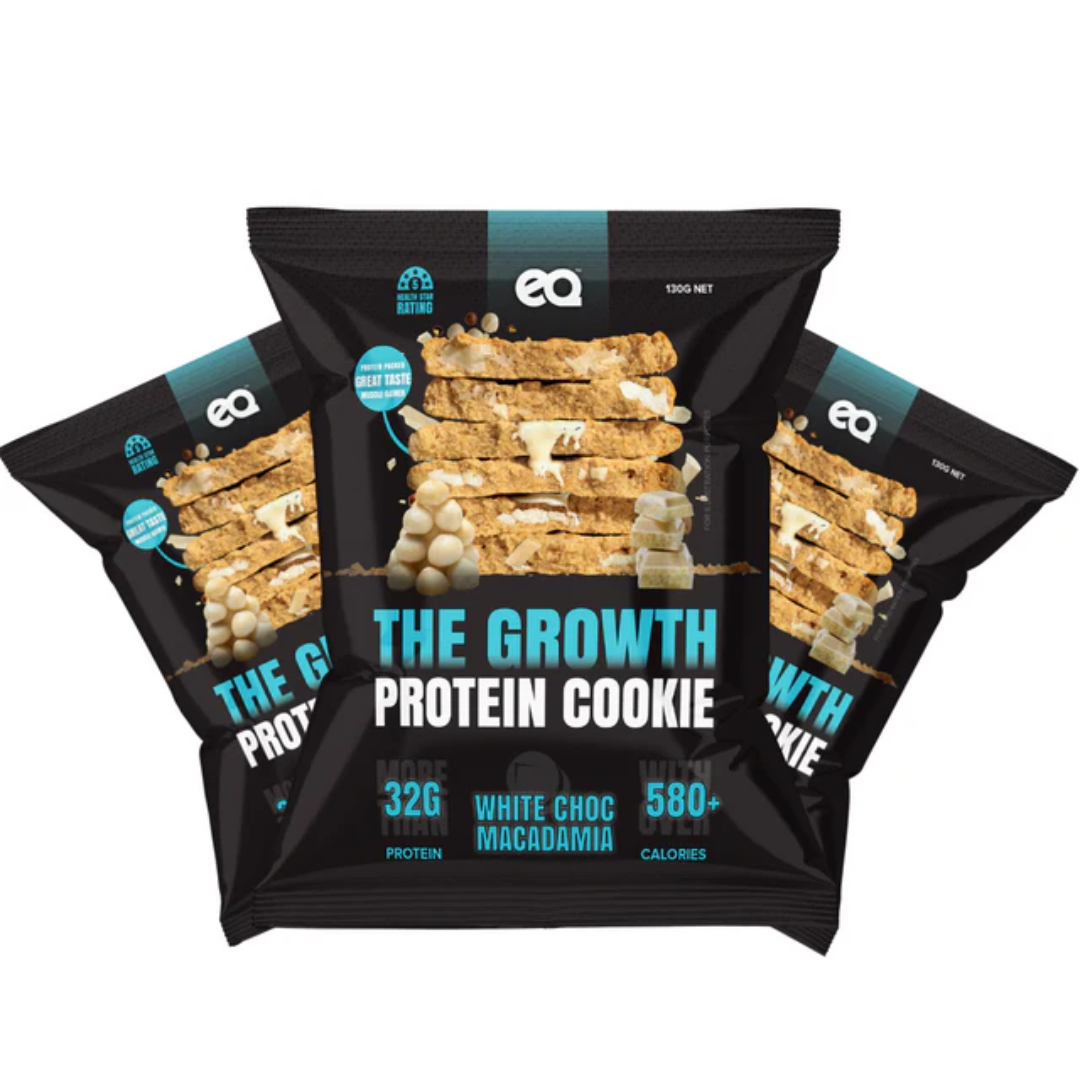 NEW EQ Growth Protein Cookie 130g White Choc Macadamia - 12 Pack