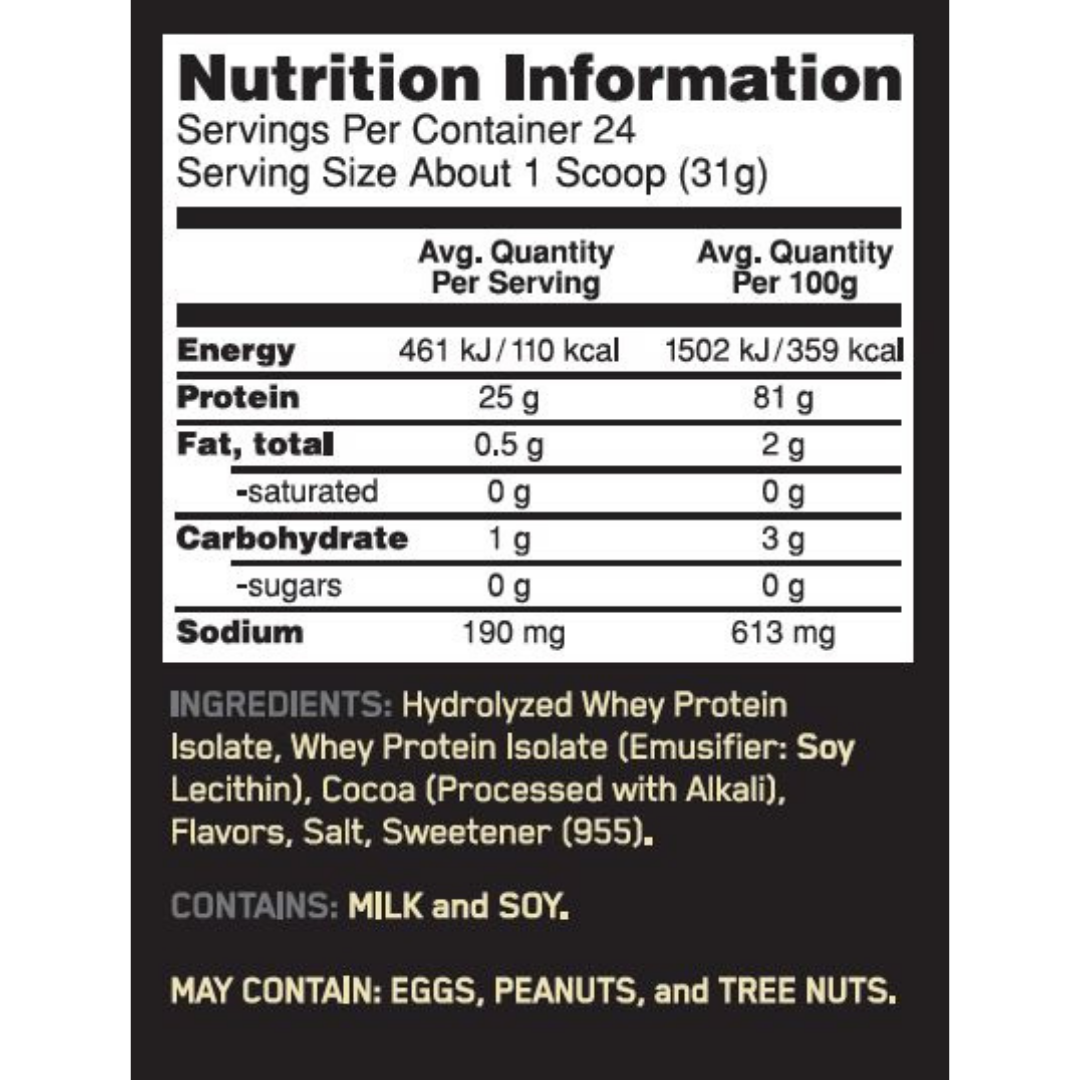 To create Gold Standard 100% Isolate, we start by selecting only the highest quality whey protein, which undergoes a series of sophisticated filtration processes to ‘isolate’ out excess fat, cholesterol and sugar. A portion of this Whey Protein Isolate is then hydrolysed—broken down into smaller chains of amino acids. The final product is a fast-digesting complete protein, containing no more than 1g of carbohydrates, less than 1g of fat and more than 80% pure protein per serving.