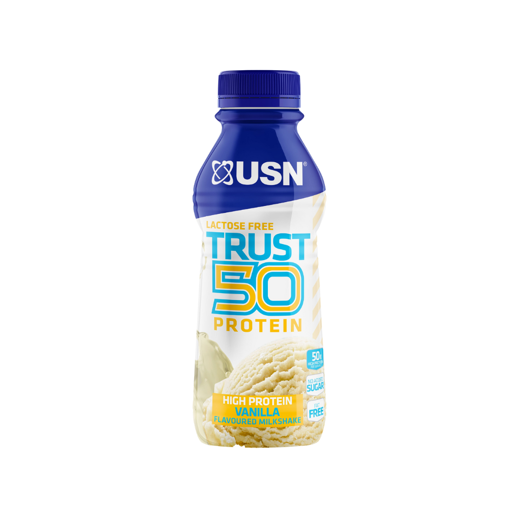 USN Trust 50 is a high protein, low carbohydrate and lactose-free ready-to-drink shake. With four delicious flavours (Vanilla, Chocolate, Strawberry and Banana), Trust 50 are a tasty and healthy snack alternative to kick those sweet cravings. With 50 grams of protein per drink, Trust 50 can help support the maintenance of lean muscle mass and help to keep you feeling satiated throughout the day.