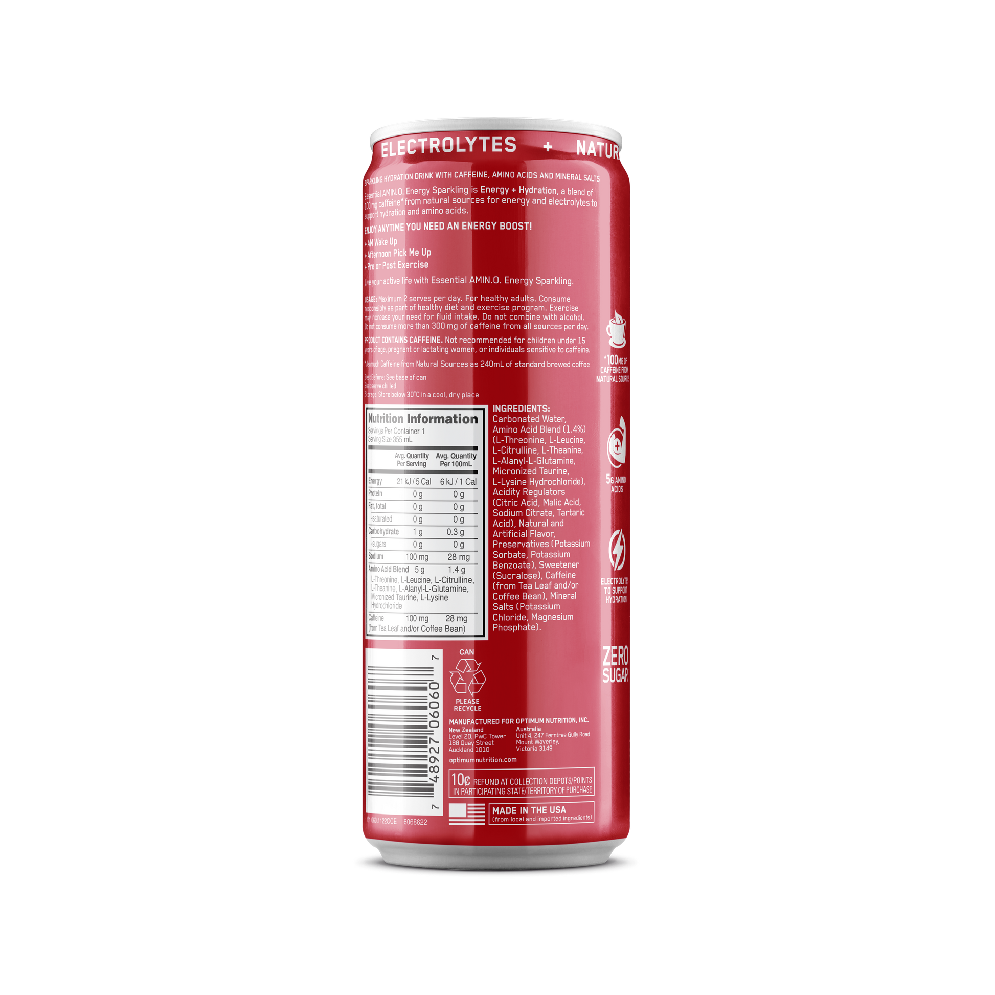 Boost energy, focus and performance with Essential Amino Energy + Electrolytes (Sparkling) RTD by Optimum Nutrition. This drink is perfect to be taken before training, after training or any time of the day to boost energy.