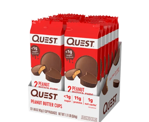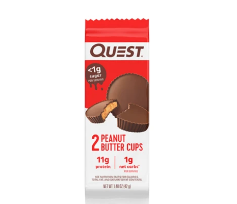 Treat yourself to the satisfyingly indulgent taste of Peanut Butter Cups without sacrificing your goals! Quest Peanut Butter Cups are high in protein, low in carbs and contain 4g of dietary fibre per serving; there’s no catch, no asterisks, just simple ingredients, real food and perfect nutrition. Whether you’re craving a sweet treat at home or need a high protein snack on the go; Quest Peanut Butter Cups are the perfect solution!