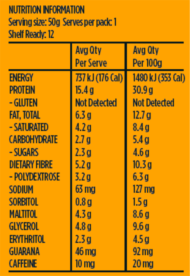 Each bar packs 15g of performance protein from a premium blend of whey, casein, collagen and soy crisps — supporting muscle recovery, strength and satiety. Plus, a naturally-sourced caffeine boost from guarana helps sharpen focus and sustain energy without the crash.