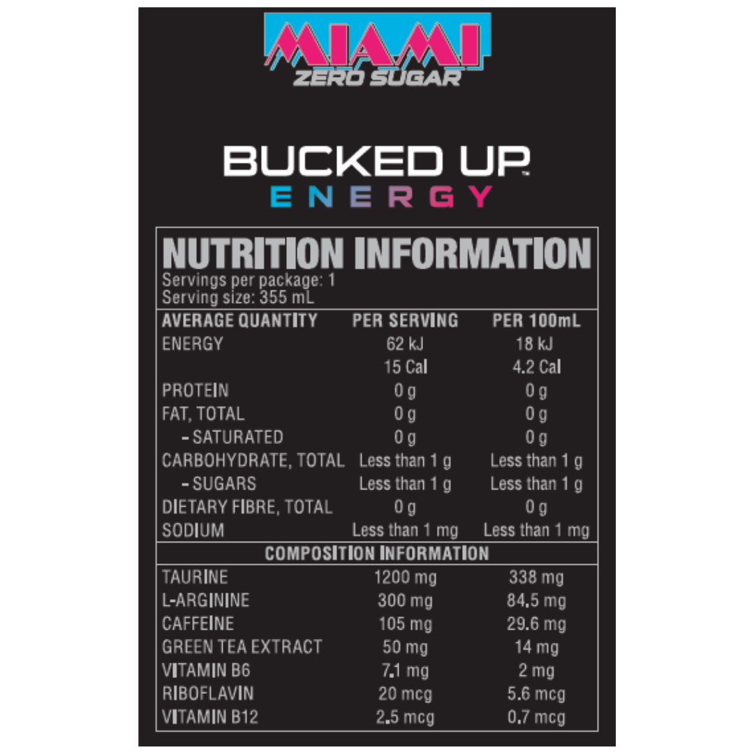 Bucked Up Energy Drink 355ml Miami - 12 Pack
