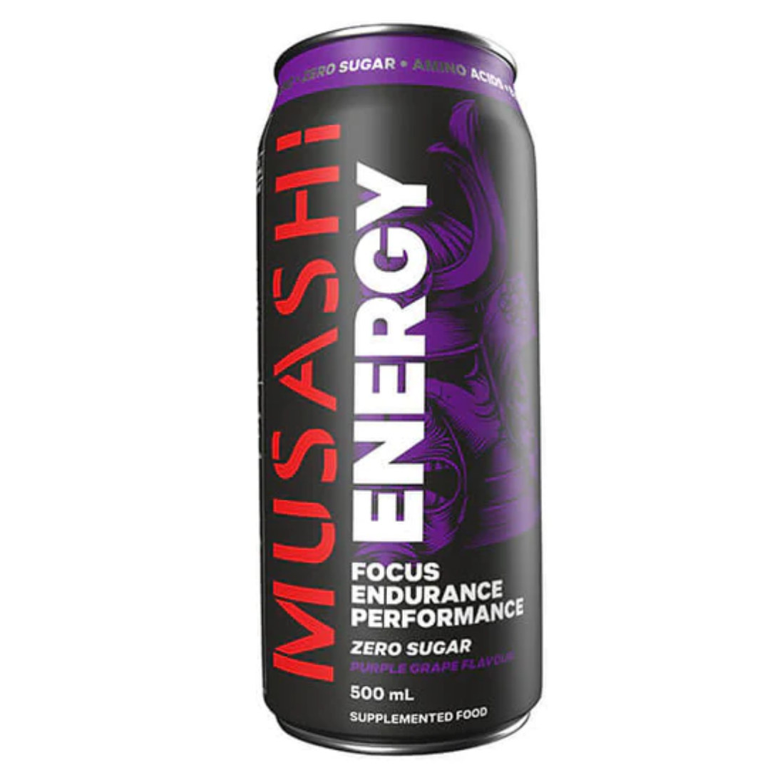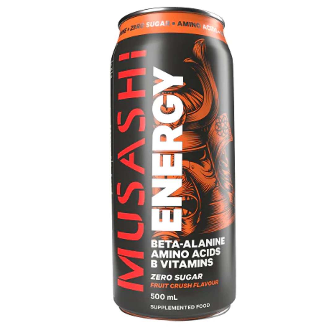 Musashi Energy Drink is a zero-sugar flavour sensation with a synergistic blend of amino acids and key nutrients. An amplified energy beverage scientifically formulated to help reduce tiredness and fatigue, and support normal energy metabolism.